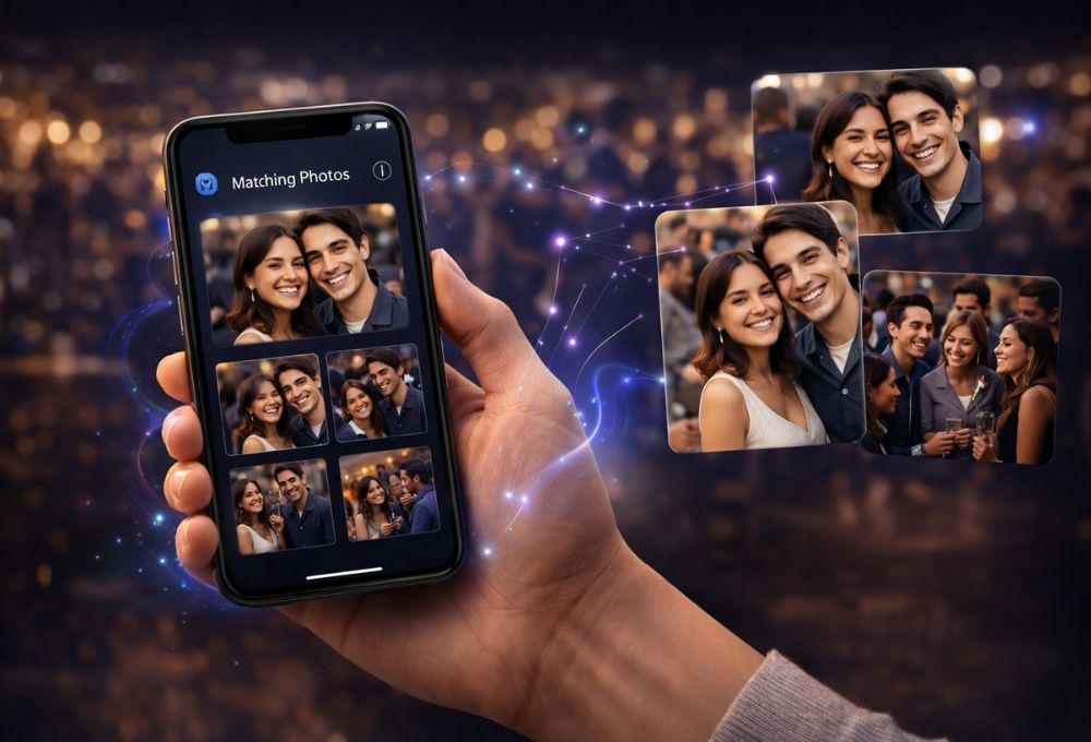 VeusZ scans thousands of images and delivers every matching moment instantly to each guest.